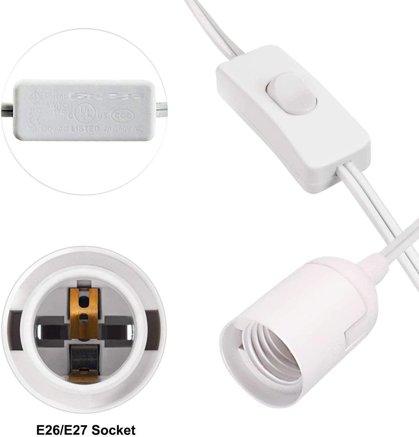Extension cable: 20 feet long satisfies for most hanging light applications; Fits standard E26 Socket and On/Off toggle switch; Max Wattage: 360W, 120V-250V