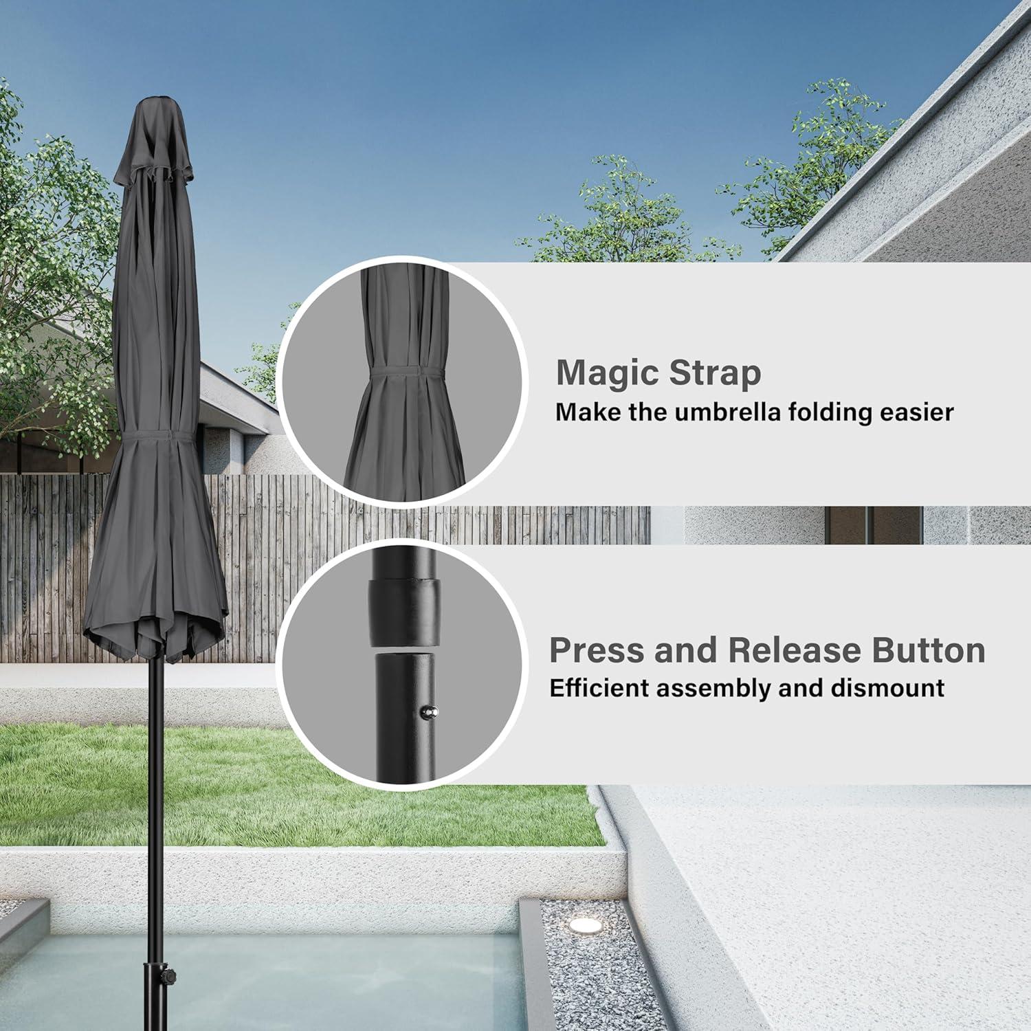Simple Deluxe 9ft Outdoor Market Table Patio Umbrella with Button Tilt(Gray+Black)